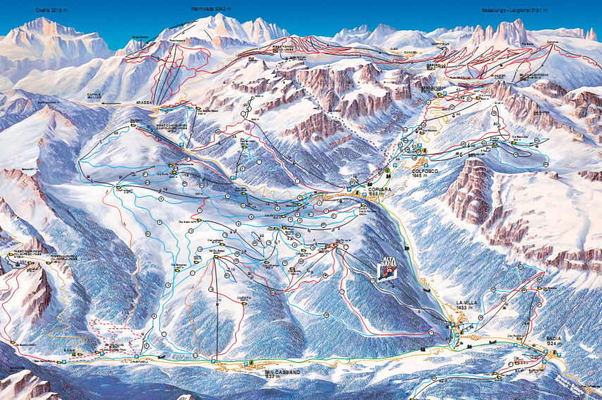 V oblasti Alta Badia, východněji od Arabbby, je středisko Corvara, které je stále ještě zapojeno do okruhu Sella Rondy. Corvara nabízí několik zajímavých červených sjezdovek, ale na své si v tomto středisku přijdou především začínající lyžaři nebo rodiny s dětmi.